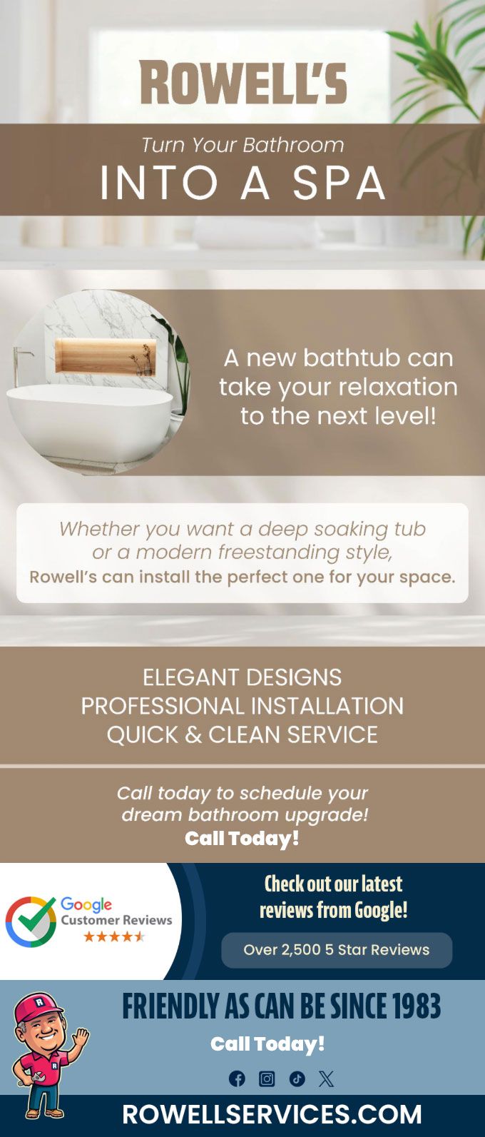 "Friendly As Can Be Since 1983!" When you need help with your plumbing, drains, heating, cooling or electrical in Bethlehem, you can always rely on Rowell's Services! Call us now or book online!